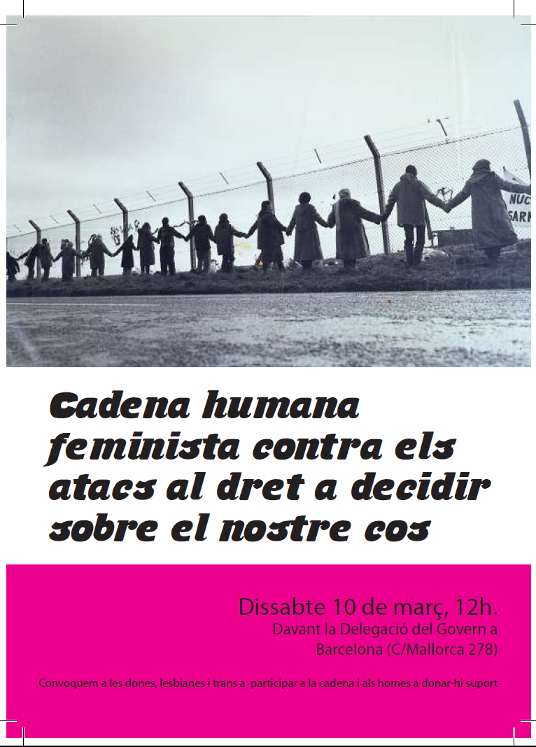 març62012Agenda– 10.03.2012 – 12h – Davant la Delegació del Govern a Barcelona (C/Mallorca, 278) – Campanya pel Dret a l’AvortamentCategoria: AgendaPer Àngels Gómez6 març, 2012Opinadora: Àngels GómezPost navigationAnteriorPrevious post:Tercera processó dia de la dona treballadoraSegüentNext post:Manifestació 8 de març ‘Cada dia és 8 de març’Publicacions relacionadesAGENDA DONES AL DIA – EDICIÓ MAIG9 maig, 2019DECLARACIÓ INSTITUCIONAL 8 DE MARÇ 20195 març, 20192a hackató DadesxDones el pròxim 16 de març3 març, 2019No title13 febrer, 201930è aniversari del Consell Nacional de les Dones de Catalunya13 febrer, 2019GSMA WOMEN4TECH @4YFN BARCELONA 201911 febrer, 2019