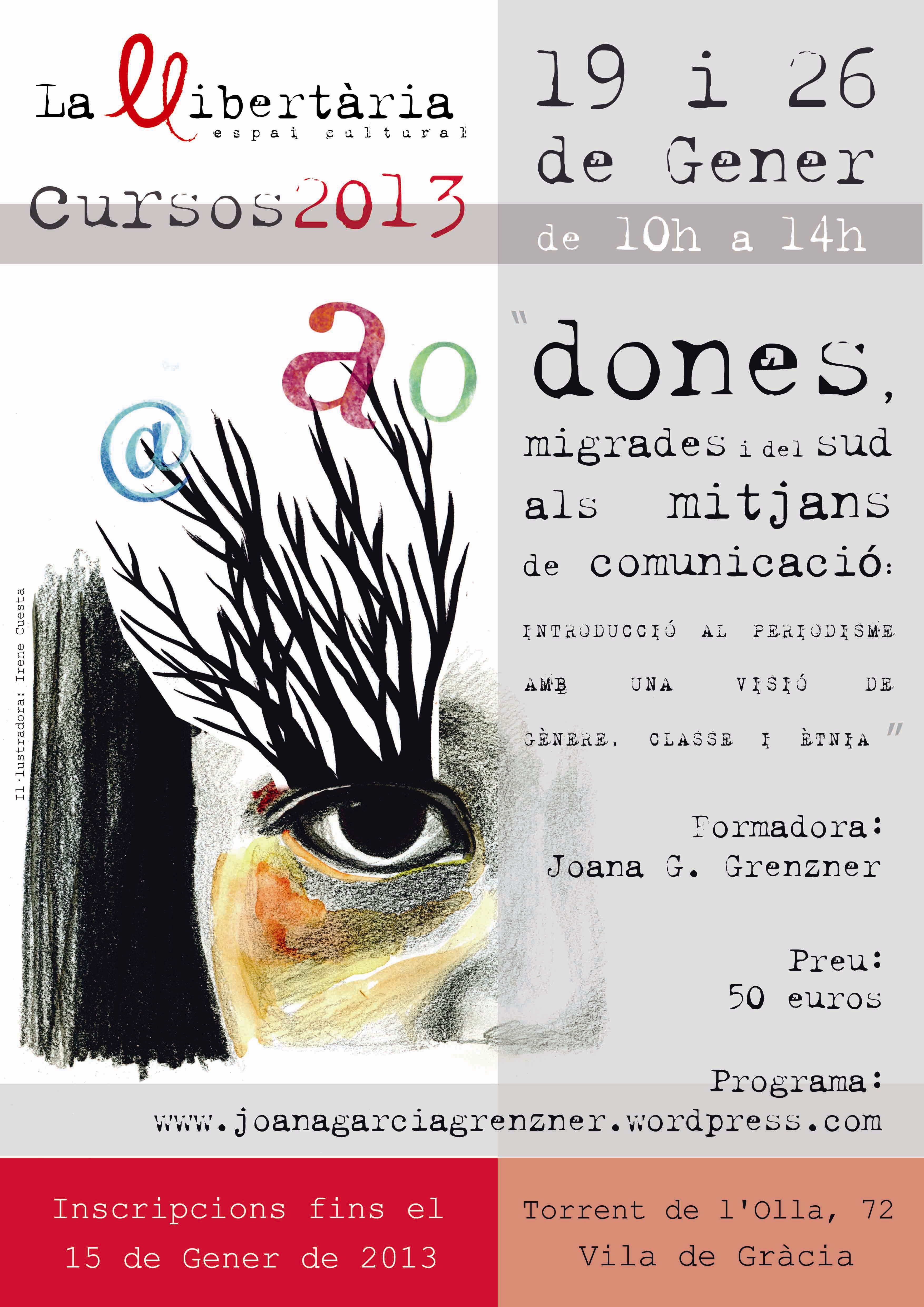 El curs és una primera aproximació a les tendències de representació de les dones, migrades i del sud als mitjans de comunicació; a les propostes de construcció d’agenda informativa alternativa amb perspectiva de gènere, classe i ètnia i als projectes informatius i xarxes de comunicadores que les han elaborat. S’adreça a públics diversos, tant a persones que es dediquen al món del periodisme o la comunicació com a associacions i gent interessada en general.