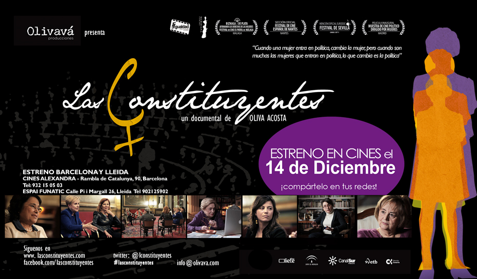 – “Les Constituents”, amb guió i direcció d’Oliva Acosta, és el primer film documental sobre les 27 dones, 21 diputades i 6 senadores, que des del seu treball parlamentari en la legislatura constituent de 1977, van ser protagonistes del canvi polític cap a la democràcia a Espanya.