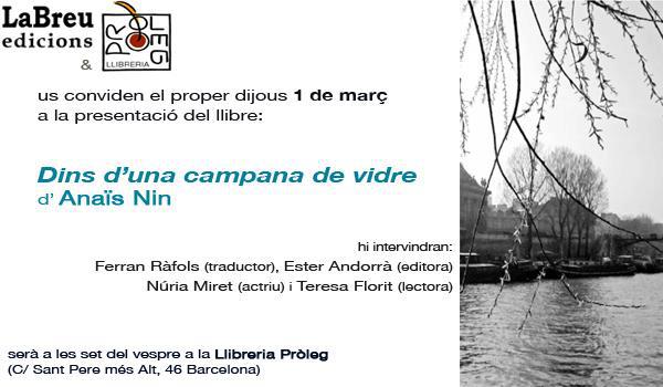 – A càrrec de:Ferran Ràfols (traductor), Ester Andorrà (editora), Núria Miret (actriu) i Teresa Florit (lectora