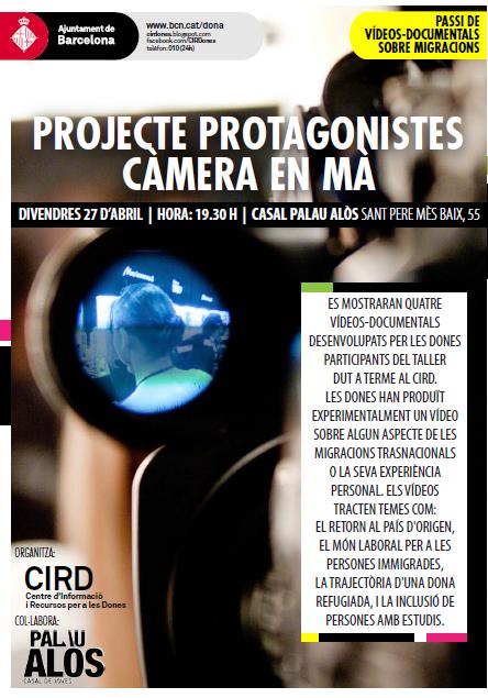 Es presentaran alguns curts-documentals desenvolupats experimentalment per les participants del projecte “Protagonistes. Càmera en Mà” del CIRD. Algunes dones immigrades han gravat la seva pròpia visió sobre el procés migratori.
