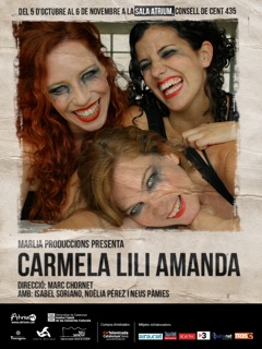 La Sala Atrium de Barcelon acull Carmela, Lili, Amanda en la temporada 2011-2012, aquesta és una història de tres dones en una lectura de que potser només en són una, que de fet en són moltes. Les tres actrius es bategen amb el nom de les dones que protagonitzen tres