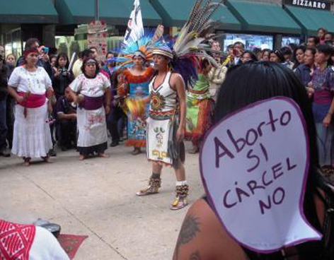 Desenes de persones vestides de morat van ser apropant-se a la cantonada del carrer Madero i la Plaça de la Constitució per expressar l’uníson consignes com “treguin les seves rosaris dels nostres ovaris!” I “avortament legal, dret fonamental!”. Es tractava de dones i alguns homes de diversos col · lectius feministes reunits per manifestar-se a favor de l’avortament com a dret fonamental de les dones de Mèxic i Amèrica Llatina.