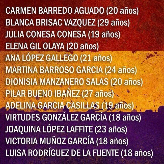 Una a una van caure a la tàpia del cementiri de l’est de Madrid, jutjades tot just dos dies abans, el 3 d’agost, en judici sumaríssim, a porta tancada, i condemnades el mateix dia a morir en un termini de setanta-dues hores, i sense esperar a complir aquest termini van ser executades.