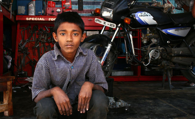 Al matí les dones s’organitzen a l’oficina de Reds, als afores de la ciutat. “Hem trobat diversos nens treballant a prop de l’estació del tren, reparant bicicletes i autorickshaws. Crec que hauríem organitzar quatre equips i separar perquè si anem totes juntes ens veuran arribar i amagaran als nens”, comenta un. “No, millor fem dos equips, perquè no som moltes i si no tindrem poca força per parlar amb ells”, respon una altra de les dones. Quant apareixen els representants del govern, es munten en un jeep i en diversos autorickshaws; en arribar a la zona d’intervenció, se separen i caminen dissimuladament fins arribar al taller on treballa Shueb, distret amb una moto i una clau a la mà. En veure’l, les dones corren cap a ell i l’amo del negoci, en un intent perquè el noi fugi, l’empeny, però aquest cau a terra.