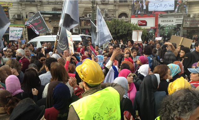 Dimecres 3 de juliol al vespre. Tahrir està plena de centenars de milers d’egipcis que exigeixen la dimissió del president egipci. L’artista i activista egipci Aalam Wassef també hi és, però per motius diferents. Forma part del grup de voluntaris i voluntàries de la plataforma OpAntiSH (Operació anti assetjament sexual) que patrullen la plaça. No gaire lluny d’aquí, l’arabista espanyola María Sánchez Muñoz coordina via xarxes socials i telèfon el grup de voluntaris d’una altra plataforma ciutadana similar, Tahrir Bodyguard. Ambdues lluiten espatlla amb espatlla des de fa mesos per dur a terme una altra revolució pendent, la de posar punt i final als assalts sexuals col · lectius contra dones. El 3 de juliol, només el missatge del general Al Sisi anunciant la destitució de Mohamed Mursi, que es va seguir en suspens i en viu a Tahrir a través de grans pantalles, els va donar un respir.