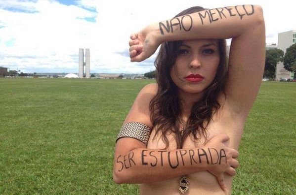 Un gran nombre de dones ha dit prou i han inundat la xarxa amb una campanya de protesta sota el lema ” No mereixo ser violada ” ( # NaoMerecoSerEstuprada ) . Facebook i Twitter s’han omplert de fotografies en què dones anònimes i conegudes posen nues només tapades per un cartell en el qual reivindiquen el seu dret a no ser violades . Sorprèn que aquesta consigna hagi de ser recordada en una de les majors democràcies del món .