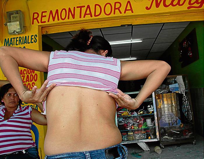 Aquest dia, a les 7 del vespre, la dona, de 37 anys, diu que el seu marit la va agafar a trompa-des a la cara i l’esquena. No content amb això, va prendre diversos objectes i li va partir les vitrines del seu negoci, una sabateria, que és al carrer principal del sector Central, al Po raó, lloc on també viu la parella. Aquest cas es dóna només un dia després que al barri Arròs Barat, divendres, Ma-ribel Iriarte Ibarra, de 38 anys, rebés 20 ganivetades per part del seu exmarit, qui per gelosia la va atacar a casa davant dels seus fills .