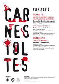 Diumenge, grans i petits, esteu convidats a la festa que es farà a la Plaça de l’Ajuntament a partir de les 11h del matí, amb xocolatada, cercavila, espectacle d’animació musical i cremada del Carnestoltes. No t’ho perdis, t’hi esperem!