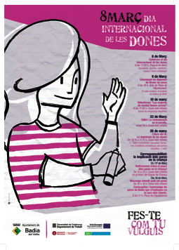 Badia del vallèsmarç42010Web local Badia del VallèsLa regidoria d’Igualtat de Badia del Vallès presenta el Cartell pel 8 de març.Si el cliqueu en ell, podeu descarregar-lo.Categoria: Web local Badia del VallèsPer donesenxarxa4 març, 2010Tags: BadienquesOpinadora: donesenxarxaPost navigationAnteriorPrevious post:Les dones entrem a l’ajuntament. Recepció de l’alcaldessa de Rubí, Carme García LoresSegüentNext post:I Sopar de Dones de Cervelló en XarxaPublicacions relacionadesCelebra el Dia Internacional de les Dones amb posts i imatges12 març, 2012Sopar i ball per a domes5 març, 2012Lectura Manifest5 març, 2012Cafè Tertúlia5 març, 20128 de Març a Badia del Vallès5 març, 2012No title27 febrer, 2012