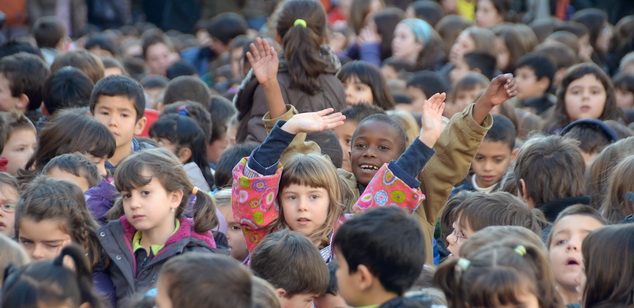 Els nens i nenes de la majoria d’escoles de Mataró s’han sumat aquest dilluns, dia 30, a la celebració del Dia Escolar de la No Violència i la Pau, jornada amb que es commemora l’aniversari de la mort de Gandhi. Les escoles celebren aquesta jornada amb diferents activitats solidàries i de sensibilització, que prèviament s’han treballat a l’aula. Entre les iniciatives que han tingut lloc aquest dilluns destaca la de l’escola Pia Santa Anna, que ha aplegat més de 2000 alumnes dels tres centres de la ciutat. Al migdia, l’alumnat ha sortit al carrer en direcció a la Plaça de Santa Anna i allà han lligat uns mocadors amb missatges de pau. A més, s’han llegit els manifestos escrits pels alumnes d’infantil, primària i secundària.