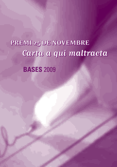 Amb motiu del Dia Internacional contra la violència i maltractaments a les dones, l’Ajuntament de Sabadell convoca el PREMI 25 DE NOVEMBRE: CARTA A QUI MALTRACTA, amb l’objectiu de promoure la sensibilització dels nois i noies de la ciutat davant la violència contra les dones en l’àmbit familiar.