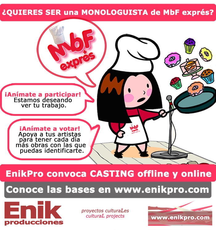 En el casting online seran les pròpies admiradores d’EnikPro que podran votar a les seves actrius preferides en dues categories. Al “Casting Online Espanya” esculliran qui es convertirà en una de les properes monologuistes dels MBF Exprés. I en la categoria “Casting Online Internacional” elegiran la millor monologuista convidada, que rebrà un guió de Mariel Macià per representar al seu país.