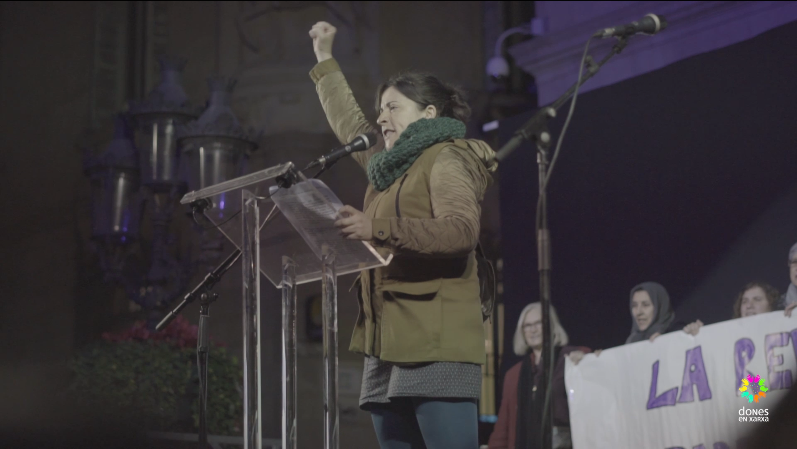 Arribades a la plaça de l’Ajuntament i sobre una tarima situada al seu davant, es llençaren missatges contra el patriarcat i el capitalisme, aliats indestriables en l’opressió de les dones. Des d’allà, veus diverses reivindicaren drets i lluites vigents: el dret a una sexualitat i a una identitat de gènere lliure, el dret a decidir sobre el propi cos, la necessitat d’obrir les fronteres a totes les persones migrades, la lluita per la sobirania alimentaria dels pobles, la pugna per la sostenibilitat, etc. El 8 de març, dia de la dona treballadora, es va fer especial crítica a la situació de discriminació laboral que pateixen les dones: “Prou bretxes al món laboral. Volem que el treball s’adapti al cicle de la vida i no nosaltres al treball”. De la mateixa manera, es va reclamar el reconeixement del treball de cures que exerceixen generalment les dones, invisibilitzat per un sistema que alhora se n’aprofita d’ell. Es va voler fer visible la lluita que estan duent a terme algunes companyes als seus llocs de treball per aconseguir una millora laboral i una dignitat personal, algunes d’elles són les treballadores de: l’hotel Hilton, Atento, Neteja de la Ciutat de la Justícia, las Kellys, Aena Restaurant Aeroport Barcelona… Entre totes, juntes i solidàries, avancem cap a una societat que volem feminista.