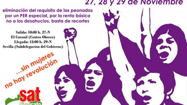 El Sindicat Andalús de Treballadors (SAT) iniciarà aquest dimarts una marxa de dones de tres dies de durada que ha organitzat per reivindicar, entre altres qüestions, un Pla d’Ocupació Rural (PER) especial, i que partirà del Coronil (Sevilla).