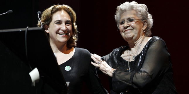 La presidenta d’Artistes Intèrprets, Societat de Gestió (AISGE), Pilar Bardem, ha lliurat el premi Dones en Unió a la portaveu de la Plataforma d’Afectats per la Hipoteca Ada Colau, durant la cerimònia de lliurament dels premis de la Unió d’Actors .